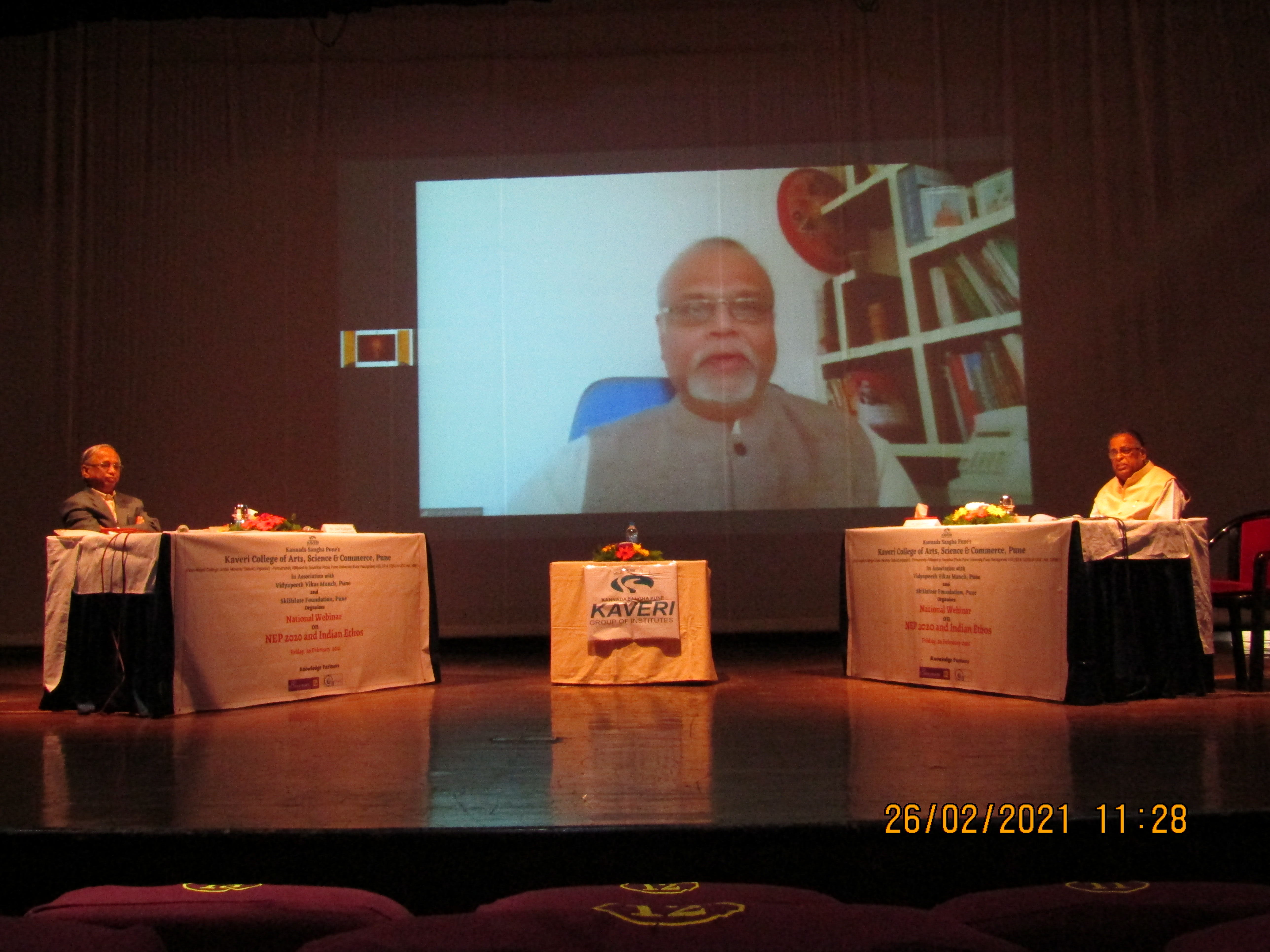 On 26 February 2021, Kannada Sangha Pune’s Kaveri College of Arts, Science and Commerce in association with Vidyapeeth Vikas Manch, Pune and Skillslate Foundation, Pune organized a National Webinar on ‘National Education Policy (NEP) 2020 and Indian Ethos’.