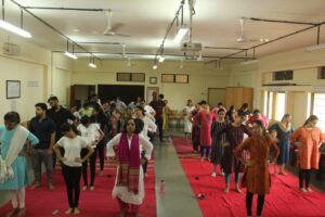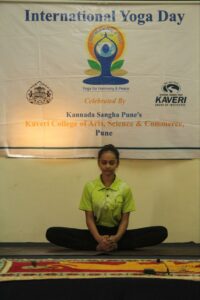 International Yoga Day has been celebrated all over the world on 21st June every year since 2015. On the occasion of the 8th World Yoga Day- 21st June 2022, Kaveri College organized a special programme for students and professors. With respect to the significance of mental, physical and emotional effects of the Corona Pandemic on the human body, the theme for this year’s International Yoga Day was ‘Yoga for Humanity’. Vice principal Dr. Mukta Karmarkar welcomed the yoga instructor Smt. Kalyani Tulpule. Mrs. Tulpule said that It is important to include yoga in your life for a better lifestyle. Yoga keeps the body healthy and relieves mental stress. She explained the benefits of regular yoga practice and certain rules while doing yoga to students and professors of Kaveri college and guided them with demonstrations. The event organizer and moderator Dr. Anand Buddhikot proposed a vote of thanks to the audience. All the teachers, non-teaching staff and students of the college actively participated in the event.