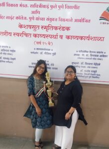 Students of Kannada Sangha Pune’s Kaveri College of Arts, Science and Commerce, Ms. Renuka Kotharkar (FYBA) and Ms. Kalyani Goswami (FY BCOM) have won the third prize in “Keshavsut Smruti Karandak”, a State Level Self-composed Poetry Competition jointly organized by Board of Student Development, Savitribai Phule Pune University and Saraswati Mandir Night College, Pune. Kaveri College’s students received a dazzling trophy, cash prize, books and certificates.