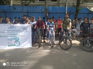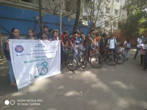 NSS-API Ms.Sujata Bacchav briefed the students about the importance and need of elebrating World Cycle Day. While addressing the gathering, she said that cycles are the cheapest and most eco-friendly means of transport and using bicycles in day to day life is not only good for the environment but also beneficial for our own health. Dr. Anand Buddhikot took sincere efforts in the execution of this event, and inspired students to make more and more use of cycles in routine life.