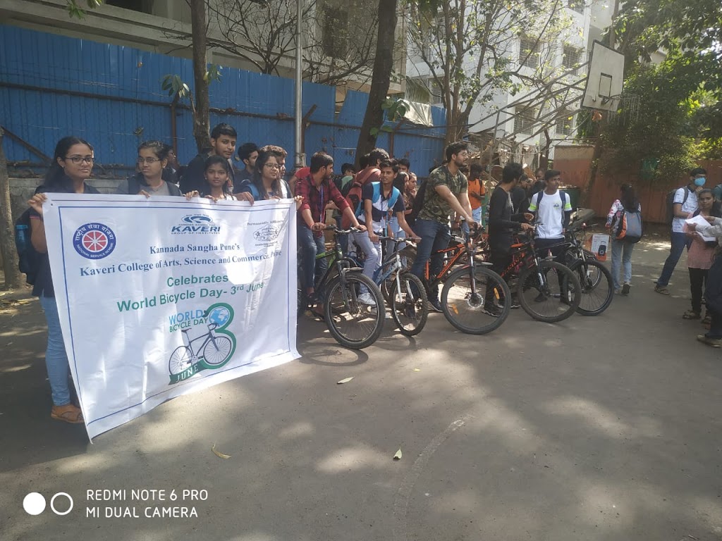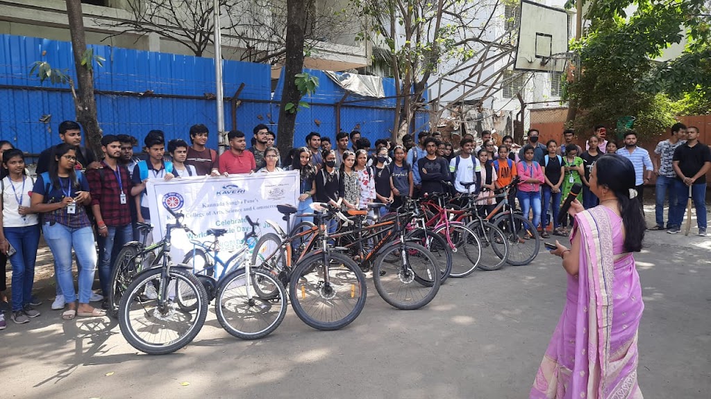 NSS Unit of Kannada Sangha Pune’s Kaveri College of Arts, Science and Commerce has organized World Cycle Day on Friday, 3rd June 2022, under the title Azadi Ka Amrit Mahotsav. It was celebrated with a motive by appealing to the students to use bicycles to reach college campus and promote affordable, clean, healthy and eco-friendly mode of transport on the occasion of World Bicycle Day. Actively responding to this initiative, a large number of students participated and enjoyed this campaign. Principal Dr.Ashok Agarwal, appreciated the students for their spontaneous huge response and co-operation to this environment friendly campaign.